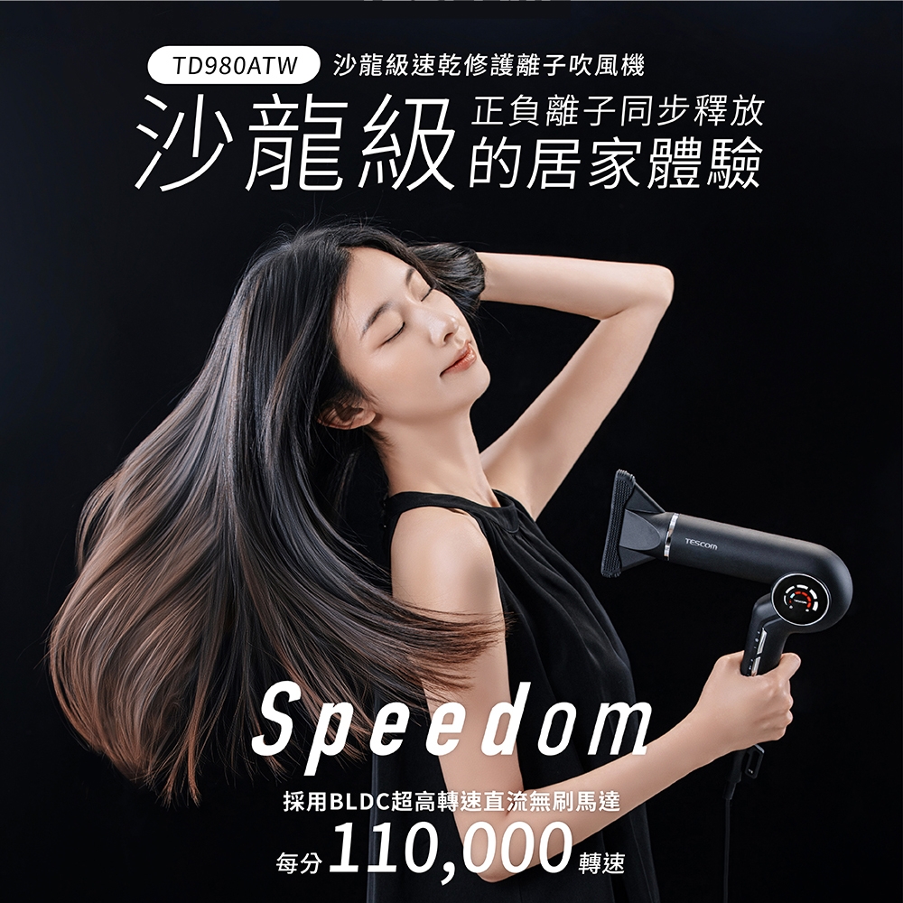 【TD980ATW 沙龍級速乾修護離子吹風機 】
