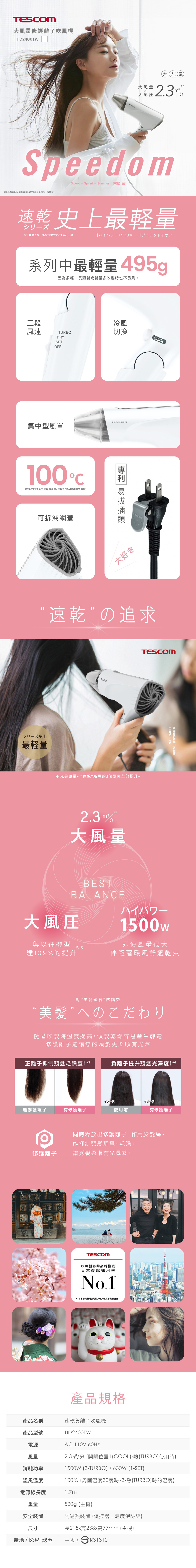 溫風溫度 | 100℃ (周圍溫度30度時・3-熱(TURBO)時的溫度) |