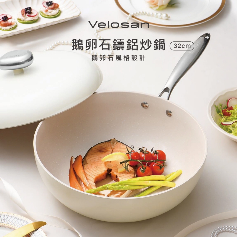 【滿額$3000 贈品】Velosan 鵝卵石鑄鋁炒鍋 32cm ※ 可累贈(送完為止)